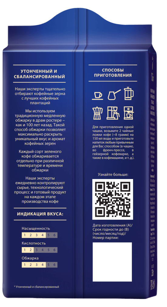 • Высокотехнологичная упаковка позволяет сохранить свежесть кофе на всем протяжении срока годности